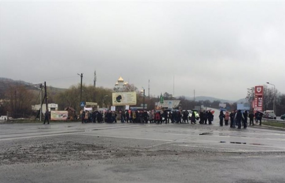 В Мукачево преподаватели и студенты ПТУ опять перекрыли международную трассу Киев - Чоп