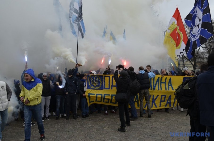 В Одессе прошел марш ультрас, футбольных болельщиков и патриотических организаций, сообщает "Укринформ".