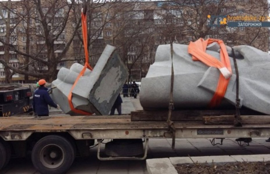 Сотрудники запорожского инженерно-строительного предприятия "Форт", осуществлявшего демонтаж, распилили нижнюю часть скульптуры (верхняя была отпилена и вывезена накануне – ред.) и вывезли на длинномере на территорию коммунального предприятия "Основание" - на хранение. Общий вес памятника - около 40 тонн, пишет УНИАН.