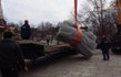 11 марта сотрудники Запорожского алюминиевого комбината демонтируют памятник Кирову перед ДК предприятия.