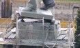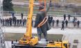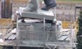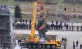 Около 13:20 17 марта памятник сняли с постамента и поставили на платформу, чтобы увезти с Запорожской пощади.