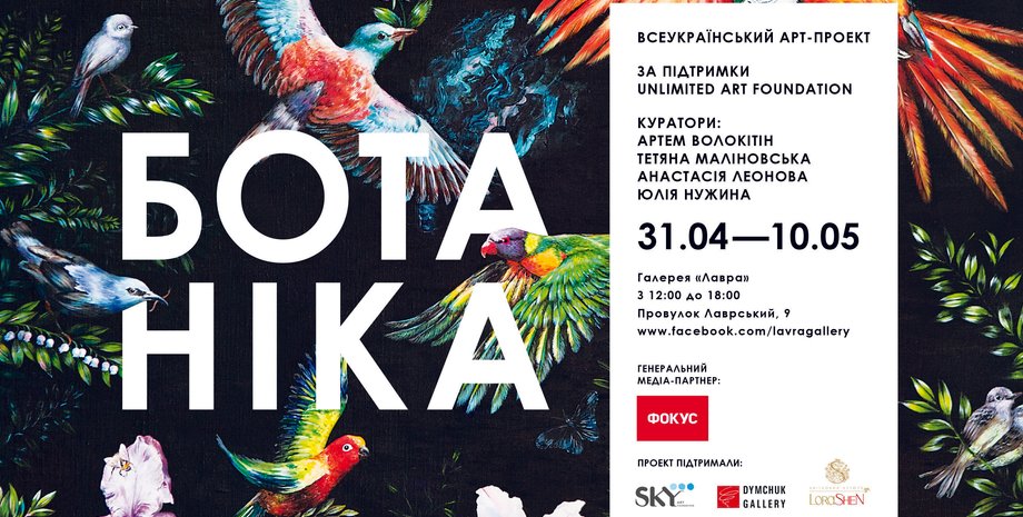 31 марта, в четверг, в 18.00, в муниципальной галерее Лавра стартует всеукраинский арт-проект "Ботаника". Художники из разных городов страны, представители разных школ и направлений, классики украинского современного искусства и молодежь уйдут от социальных проблем и будут рассуждать о естественной красоте природы и философии. Идея проекта принадлежит харьковским художникам Артему Волокитину и Татьяне Малиновской. Инициатором киевской выставки стал благотворительный фонд UnlimitedArtFoundation. Проект поддержали DymchukGallery и харьковская галерея COME IN. Кураторская группа:Артем Волокитин,Татьяна Малиновская, Анастасия Леонова и Юлия Нужина.