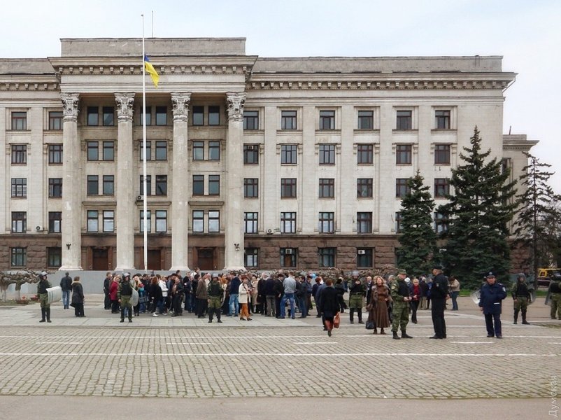 Как сообщает "Думская", около полусотни "куликовцев" после инцидента на Аллее Славы пришли к Дому профсоюзов на Куликовом поле, где к ним пыталась прорваться группа политических оппонентов в камуфляже и масках.