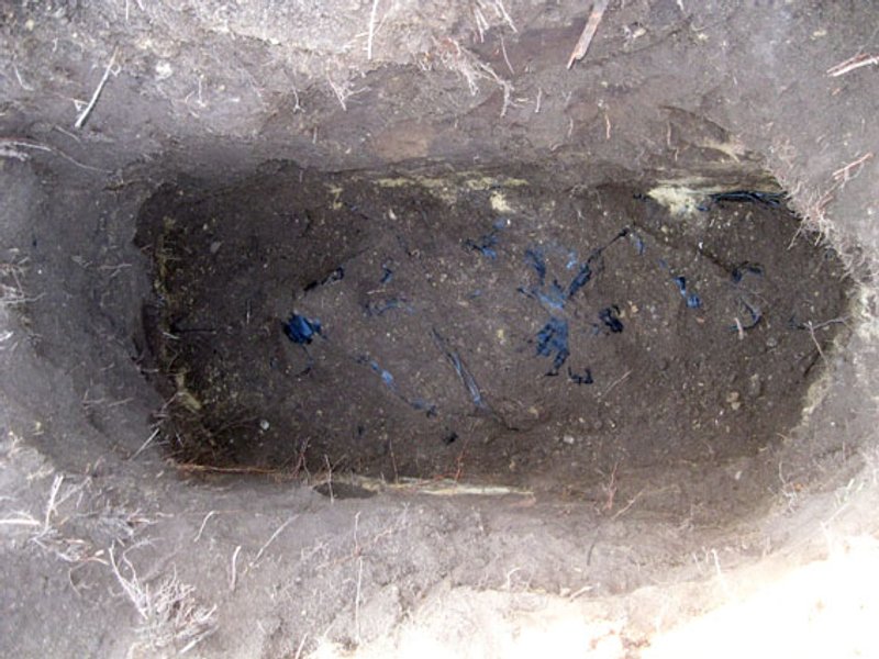 Захоронение людей в камуфляжной форме обнаружено в ходе поисковых работ в районе между селами Спорное и Грубовка. Тела закопаны за территорией населенных пунктов.