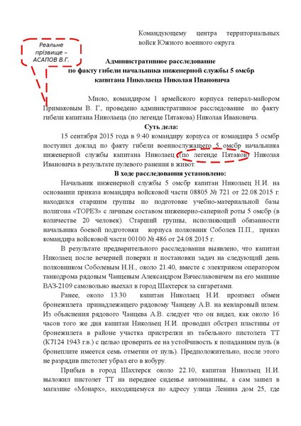 В качестве примера украинская разведка обнародовала служебные документы российских военных о расследовании гибели одного из оккупантов - офицера армии РФ Николая Николаеца.
