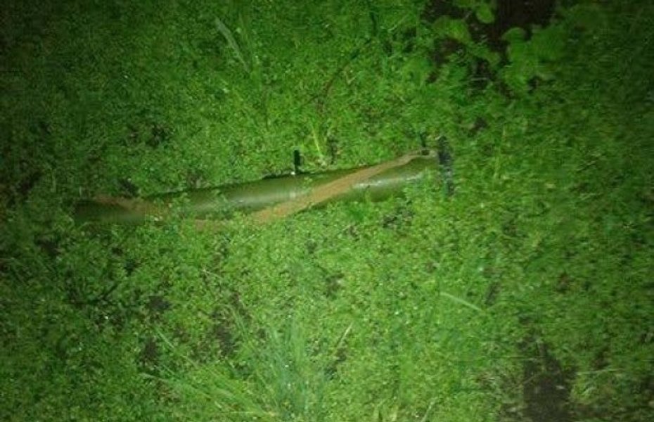 Отстрелянный тубус от гранатомета нашли в кустах через дорогу от здания.