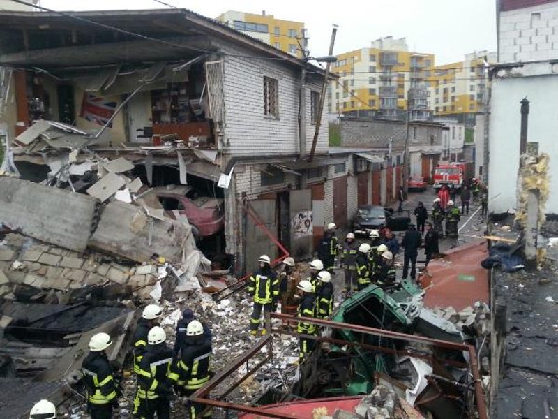 26 апреля в Подольском районе Киева в переулке Квитневом произошел взрыв в гаражном кооперативе "Барвинок". Мощным взрывом разрушены пять гаражей. Погиб мужчина.