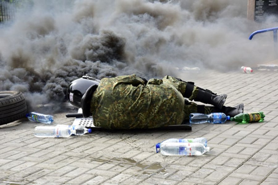 По легенде, более 200 человек пришли под управление полиции под видом "митингующих". Отряд полицейских со щитами создал барьер, к толпе вышел переговорщик, который предложил гражданам сформировать инициативную группу для общения с руководством полиции. Однако, этот вариант "митингующих" не устроил - вооруженные штурмовики убили охрану и попали на территорию главка сразу с двух входов.