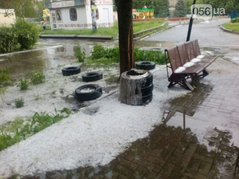 В Днепропетровске во вторник выпал град, который менее чем за полчаса покрыл дворы и улицы города, сообщает городской портал 056.ua.