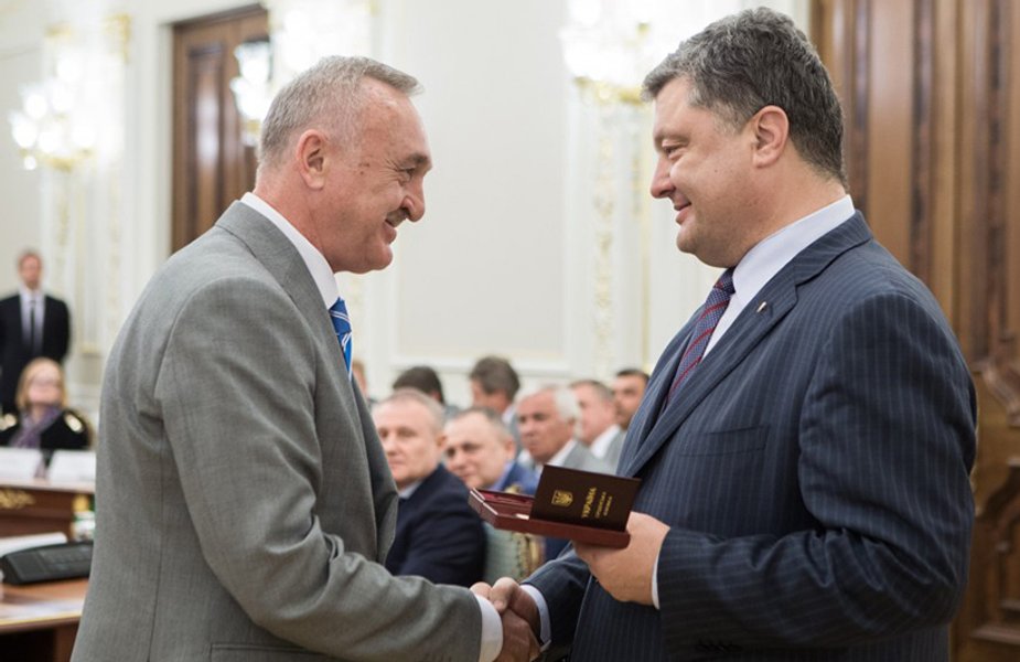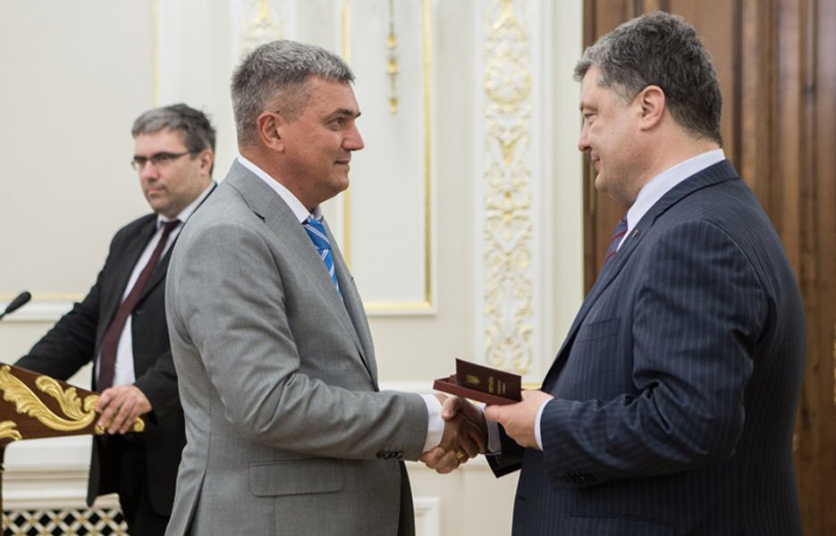 Порошенко вручил государственные награды футболистам команды "Динамо" (Киев), отметив их весомый личный вклад в развитие и популяризацию отечественного футбола, подъем международного спортивного престижа Украины и по случаю 30-летия победы в футбольном матче Кубка обладателей кубков УЕФА.