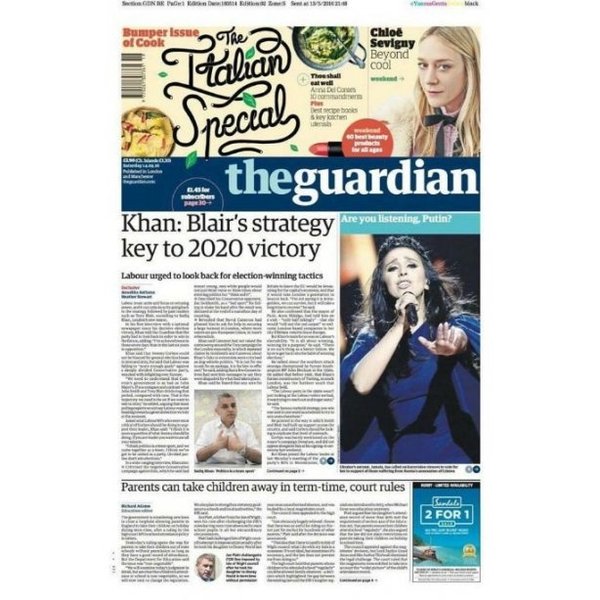 Британская газета The Guardian вышла с фотографией украинской участницы Евровидения на обложке.