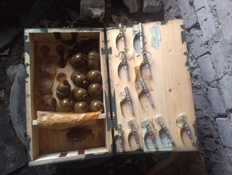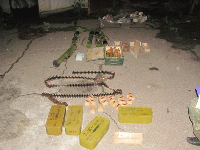 Сотрудники следственно-оперативной группы Северодонецкого отдела полиции изъяли из тайника четыре ручных противотанковых гранатомета РПГ-22, один РПГ-26, четыре цинка с патронами разного калибра (около 2000), 15 пакетов с патронами по 20 шт. в каждом калибра 7,62 мм – всего 300 шт., 15 пакетов с патронами для снайперской винтовки Драгунова по 20 шт. в каждом калибра 7,62 мм – всего 300 шт., 10 гранат РГД-5, одну гранату Ф-1, корпус противопехотной мины МОН 50 и пулеметную ленту с патронами 7,62 мм – 215 шт.