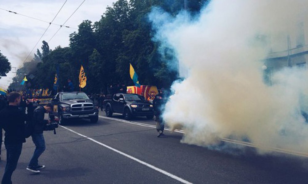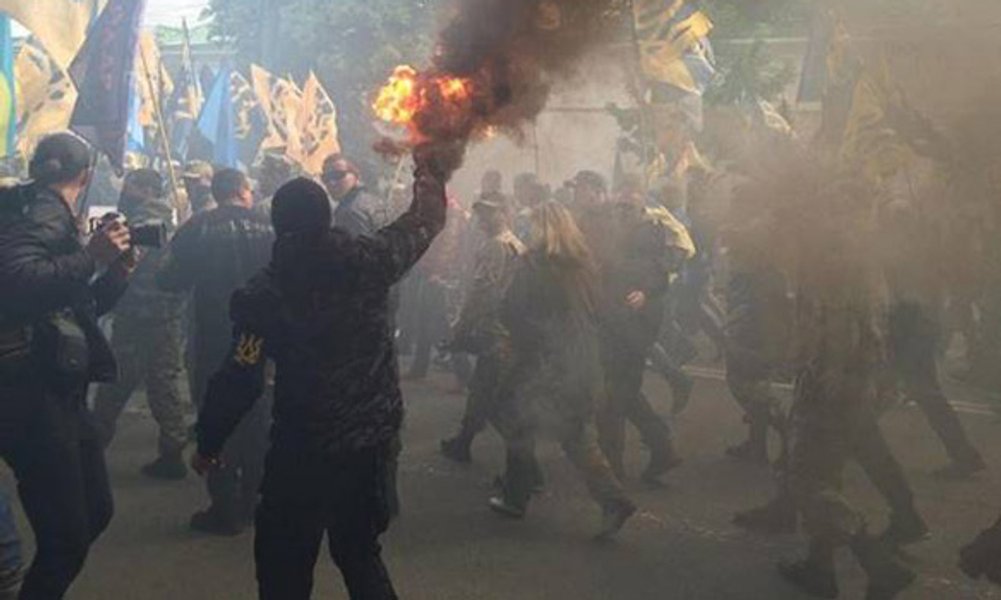 В Нацполиции сообщают, что участники марша "Азова" жгли дымовые шашки и использовали пиротехническую продукцию. Здание парламента с утра усиленно охраняли правоохранители. Задействовано 2 тыс. человек.