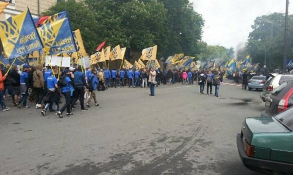Народный депутат и первый комбат "Азова" Андрей Билецкий заявил, что участников марша около 10 тысяч. Он также выступил перед участниками марша перед зданием Рады.
