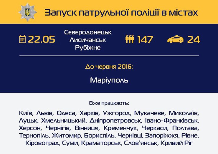 Как отметил глава МВД Арсен Аваков, следующий запуск патрульной полиции запланирован в Мариуполе 30 мая.