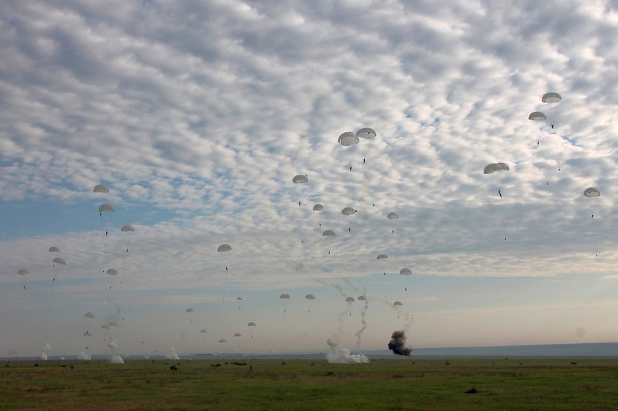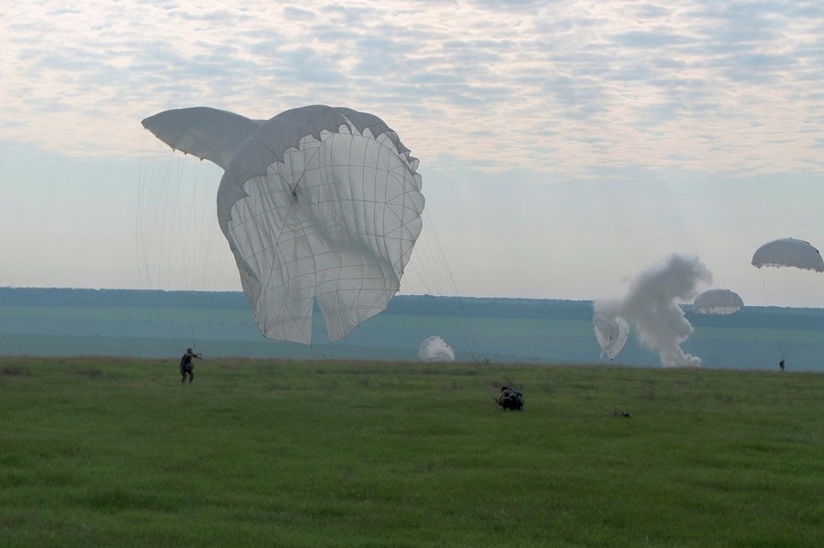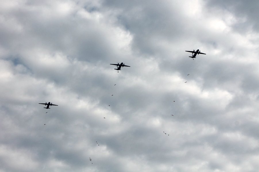 Как сообщается, десантирование парашютным способом происходило одновременно из трех самолетов Ан-26 Воздушных сил Вооруженных сил Украины, и проходило в несколько этапов. Всего на несколько площадок приземления было доставлено более трехсот военнослужащих сводного подразделения.