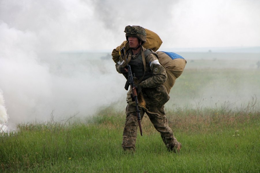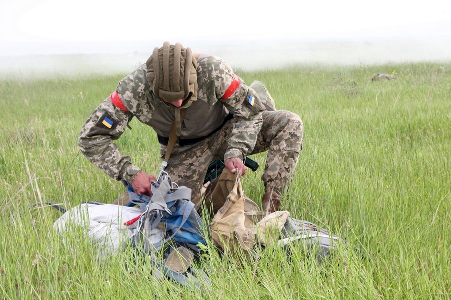 "Десантники 79-й отдельной десантно-штурмовой бригады Высокомобильных десантных войск Вооруженных сил Украины провели учения по массовому десантированию, выполнению марша и штурму объекта условного противника", - говорится в сообщении.