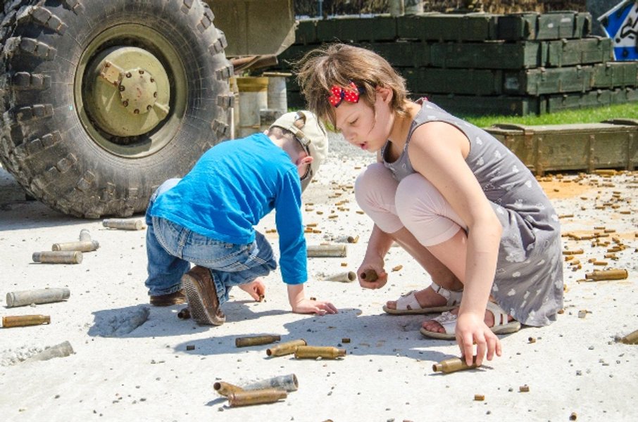 На выставке можно увидеть блокпост украинской армии в Песках и руины донецкого аэропорта. Экспозицию военной техники дополнили простреленными знаками и гильзами.