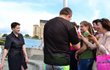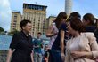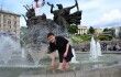 После освобождения из российских застенков народный депутат, делегат Украины в ПАСЕ, украинская летчица Надежда Савченко искупалась в фонтане на Майдане Незалежности в Киеве и пообщалась с соотечественниками.