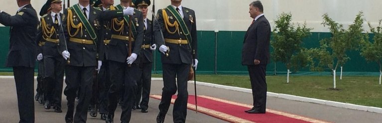 Порошенко поблагодарил пограничников за надежную защиту страны, вручил ключи от служебного жилья, государственные награды и посмотрел фильм "Война на нулевом километре", в основу которого легли реальные истории пограничников в первые месяцы российской агрессии.