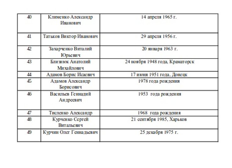 В списке также дважды упоминается Анатолий Близнюк: под номером 32 как уроженец Краматорска Донецкой области, 27 ноября 1948 года рождения; и под номером 43 как Близнюк Анатолий Михайлович (24 ноября 1948 года, Краматорск).