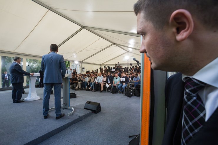 В этом году вопрос президентского бизнеса стал особенно актуальным после публикации расследования об офшорных фирмах Порошенко. Президент предоставил право задать вопрос о PanamaPapers соавтору расследования Дмитрию Гнапу, и заверил, что "офшорного скандала не было". "Компания создана с единственной целью: передать активы президента Порошенко в доверительную собственность, чтобы отделить власть от бизнеса. Продажа активов будет проведена с Украиной, и все налоги будут заплачены в Украине", - заверил Порошенко.