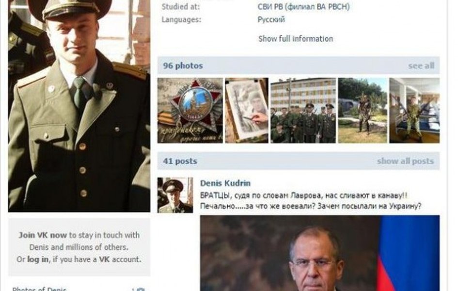 В профиле Дениса Кудрина указано, что он служит с 2005 года в ВЧ 52009 ВВО РФ (третий полк, относится к Ракетным войскам стратегического назначения, расположена в г. Иркутск) и окончил Серпуховский военный институт ракетных войск, филиал Военной академии Ракетных войск стратегического назначения имени Петра Великого. Очевидно, имеет офицерское звание. В сохраненной копии его страницы за май 2015 года Кудрин указывал, что является "Командиром 3-его МСБ 2-ой отдельной бригады милиции ЛНР. П/п-к", а с 2014 года проходит службу в "МО "ЛНР".