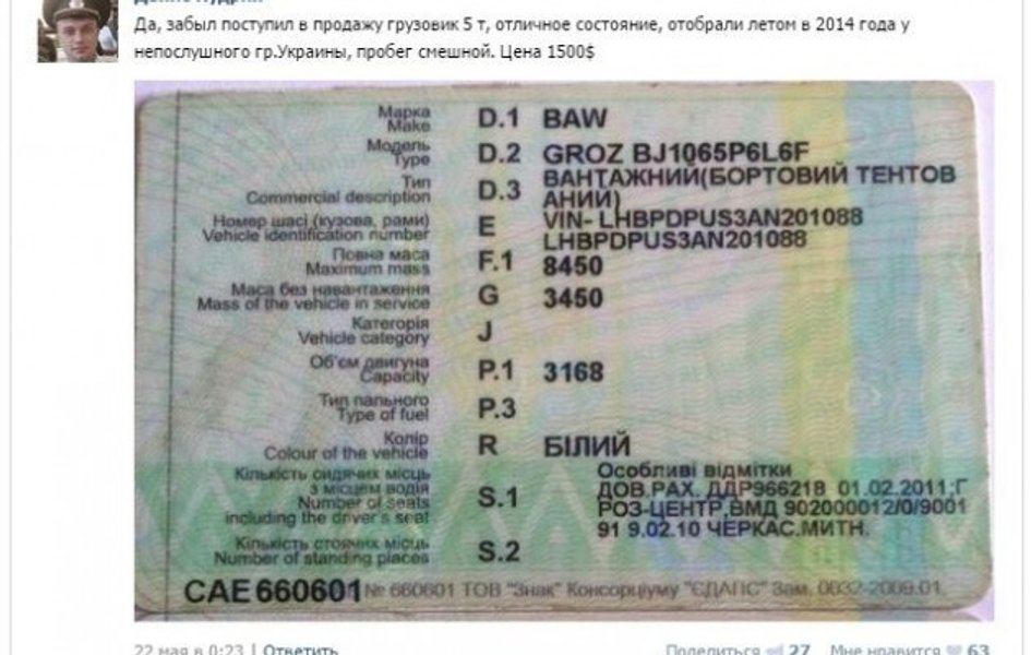 "Если кому надо, то продам почти за даром любое авто из ЛНР без хозяев", - пишет он в соцсети