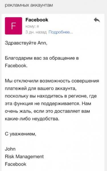 Отключение рекламных аккаунтов для жителей Крыма началось 1 июня. За неделю возможность продвижения бизнеса в Facebook пропала у всех самых активных крымских предпринимателей. Предполагалось, что возможность сохраняется для тех, кто не ведет такой уж бурной рекламной деятельности, однако, при попытке создать кампанию и завести деньги на счет, эта возможность блокируется.