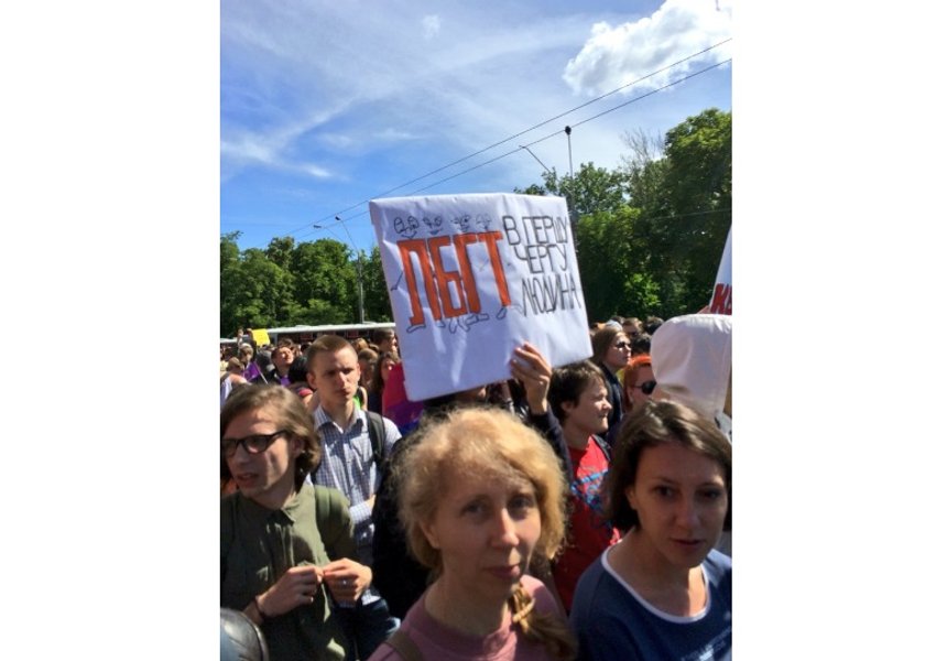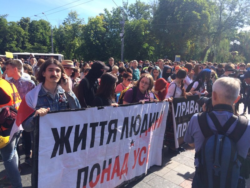 Около 10:10 колонна "Марша равенства" начала свое шествие от ул. Владимирской в сторону площади Льва Толстого.