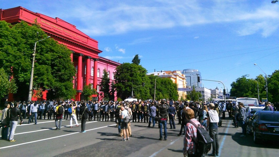 Еще до начала акции на территории, где собирались участники (возле Национального университета им. Т.Шевченко), произошли провокации. В частности, мужчина выхватил у одного из участников флаг Украины, чтобы тот "его не позорил". Этого мужчину правоохранители вывели за периметр сбора, передает УНИАН.