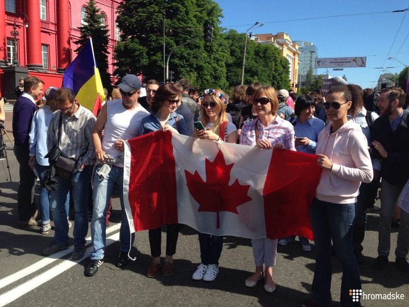 Среди участников акции, в частности, - посол Швеции в Украине Андреас фон Бекерат и евродепутаты, в том числе председатель фракции "Зеленых" в Европарламенте Ребекка Хармс, а также народный депутат Украины из фракции "Блок Петра Порошенко" Сергей Лещенко. Поддержать Марш равенства вышли также другие граждане.