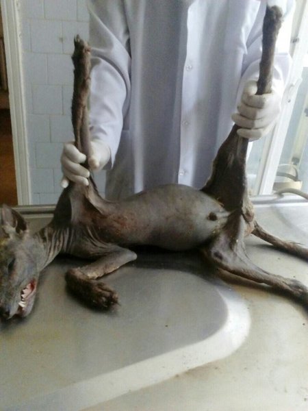 "Чупакабра вышла на охоту, я ее поймал у себя во дворе. Животное давно уже делало беду в нашем селе, открывало клетки и съедало домашнюю птицу, кроликов", - рассказал Иван, житель села, убивший животное.