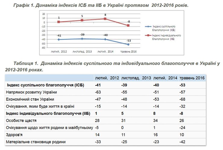 При этом индекс индивидуального благополучия (ИИБ), который показывает удовлетворенность граждан своей личной жизнью, впервые достиг отрицательной отметки – "минус" 8 баллов. По мнению социологов, несмотря на все беды, украинцы в среднем гораздо более довольны личной жизнью, чем жизнью страны.