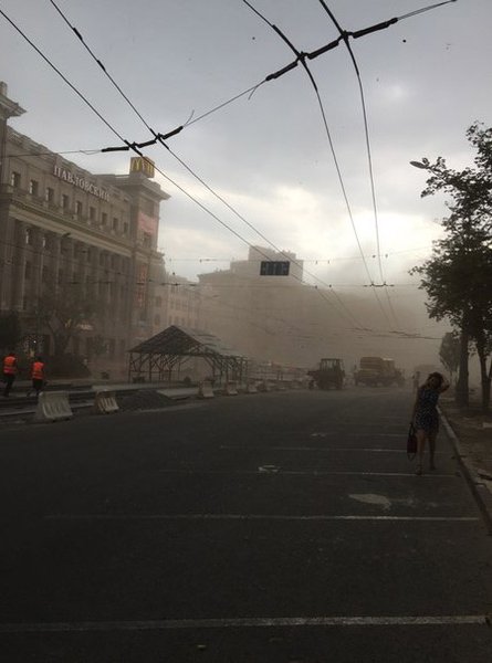 В результате внезапно начавшегося в понедельник урагана в Харькове были вырваны с корнем деревья, разбиты автомобили и повалены остановки и рекламные щиты. Хотя ураган длился всего несколько минут, его последствия были видны во всех районах города, передает городской портал 057.ua.