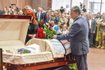 Церемония прощания состоялась в столичном "Украинском доме". В ходе церемонии, которая длилась около трех часов, на большом экране демонстрировали фотографии погибшего журналиста. Проститься с ним пришли сотни людей.