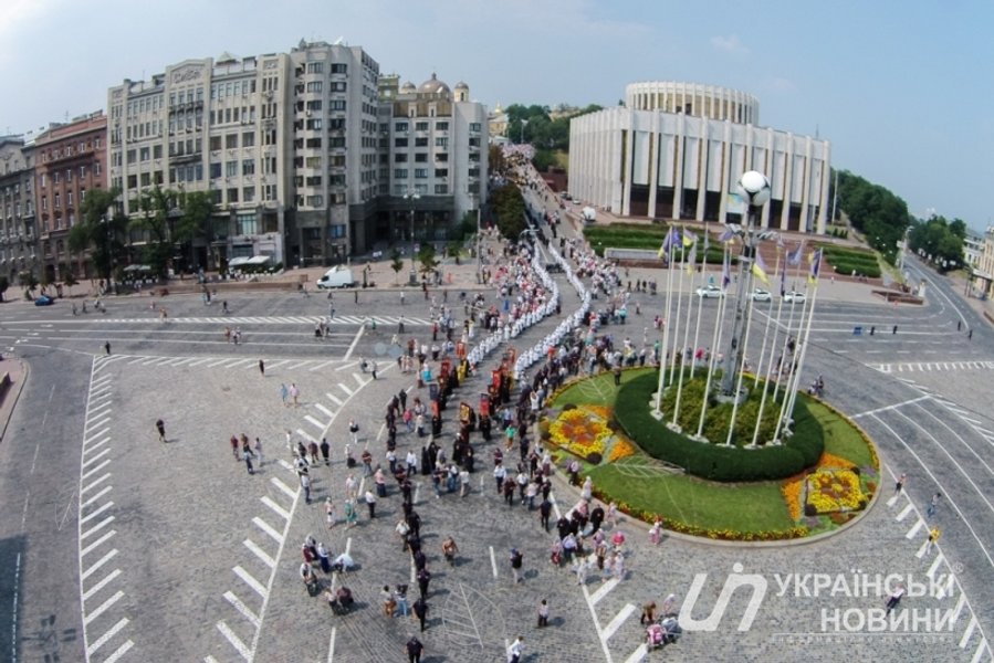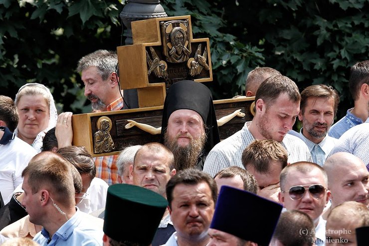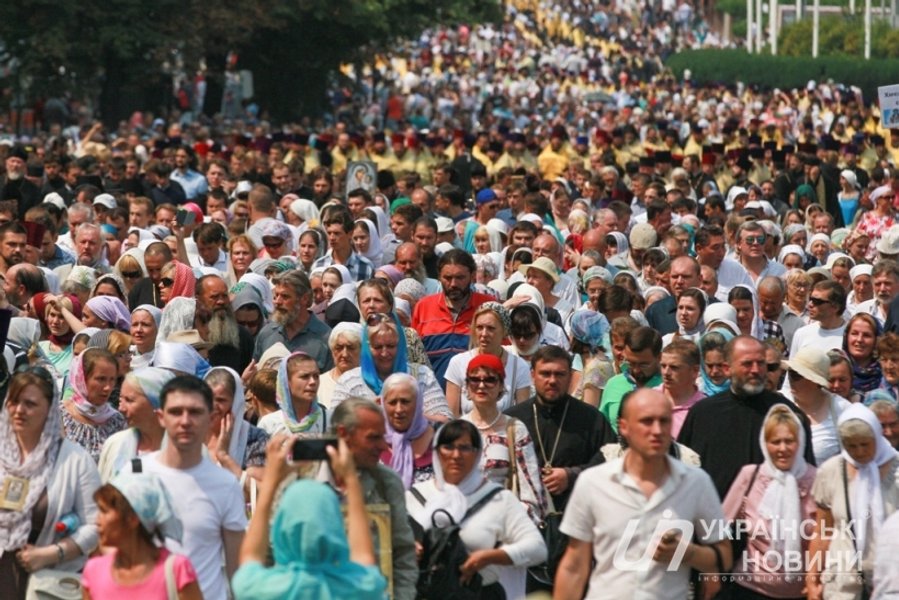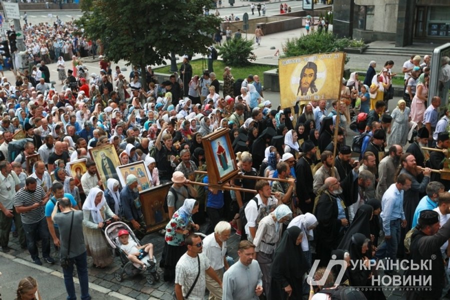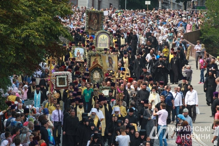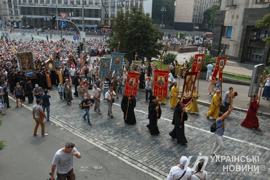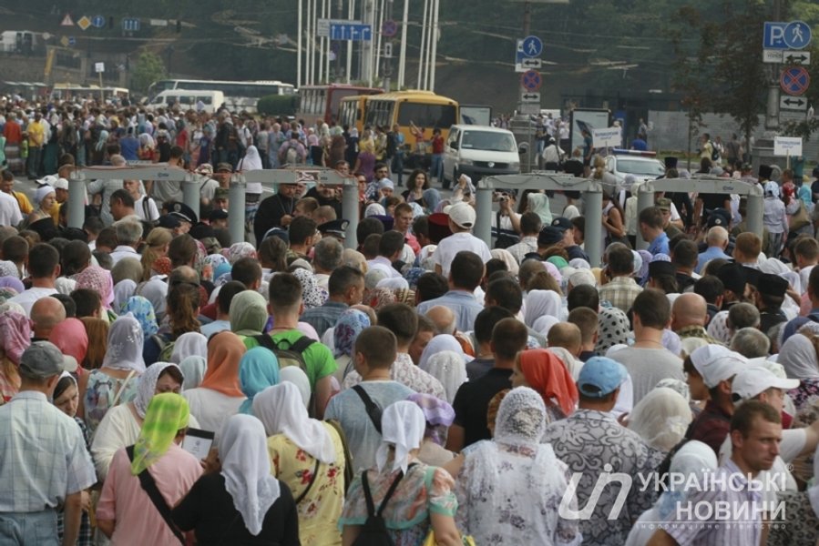 Торжественное мероприятие у памятника заняло часа полтора: чтение молитв "Отче наш" и "Богородице", молитвы за мир в Украине, выступление предстоятеля УПЦ (МП) митрополита Онуфрия. После молебна под размеренное "Господи Иисусе Христе, сыне божий, помилуй нас…" длинная колонна двинулась к Киево-Печерской лавре.