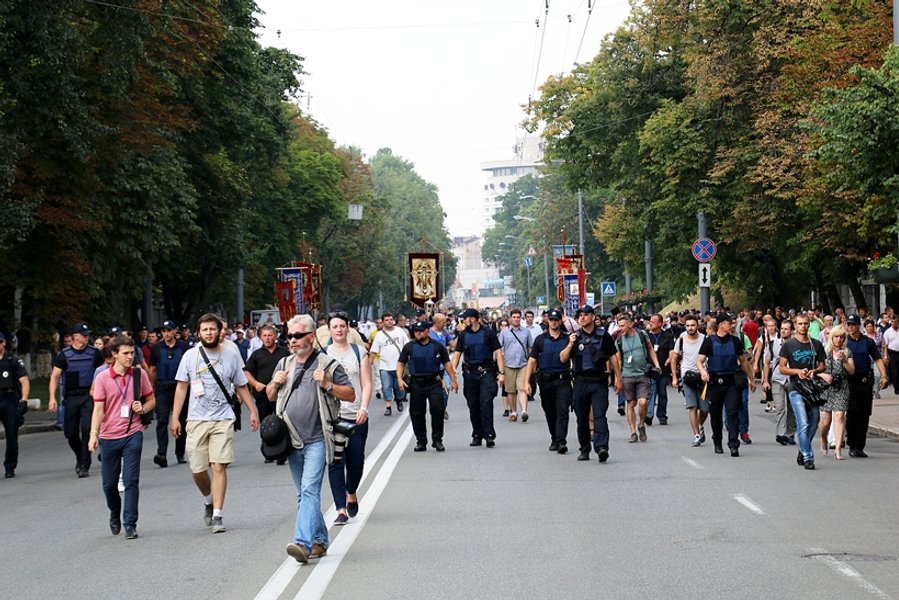 Правоохранительные органы постарались, чтобы крестный ход действительно закончился мирно. Как и на недавнем Марше равенства, были задействованы несколько тысяч полицейских, всех участников мероприятия пропускали через металлоискатель. Стычек на въездах в Киев, где свои блокпосты организовали представители Организации украинских националистов, удалось избежать. "Ходоков" убедили не идти маршем по Киеву, а сесть в автобусы, переночевать в монастырях и под контролем полиции приехать к месту событий.