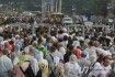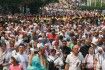 Площадка у памятника князю Владимиру явно не была рассчитана на такое количество людей – хотя там собрались не анонсированные организаторами 200 тысяч, а максимум 9-10 тысяч. Большинство – женщины среднего и старшего возраста, вынужденные из-за нехватки места забираться на ближние крутые склоны.