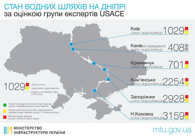 "Американские инженеры завершили техническое обследование пяти шлюзов на Днепре, выводы отчета – это неудовлетворительное состояние объектов и необходимость срочной реконструкции. Для решения этого вопроса министерство запланировало финансирование из фонда бюджетной поддержки от ЕС в размере 105 млн грн, чтобы избежать опасности. Сейчас министерство инфраструктуры совместно с Международными финансовыми организациями и партнерами разрабатывает план действий по долгосрочной программе реконструкции шлюзов на Днепре", – сообщил министр Владимир Омелян.