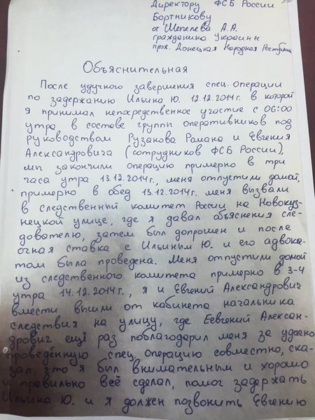 Объяснительную экс-парламентария на имя директора ФСБ опубликовал Анатолий Матиос
