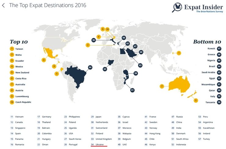 Об этом свидетельствует рейтинг Expat Insider 2016, составленный InterNations – одним из крупнейших международных сообществ для людей, которые живут и работают за рубежом, пишет Hromadske.