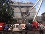 На место инцидента прибыли пожарные машины, полиция и машина скорой помощи. Из здания эвакуируют людей. Движение троллейбусов и другого транспорта на части дороги до метро "Дорогожичи" ограничено.