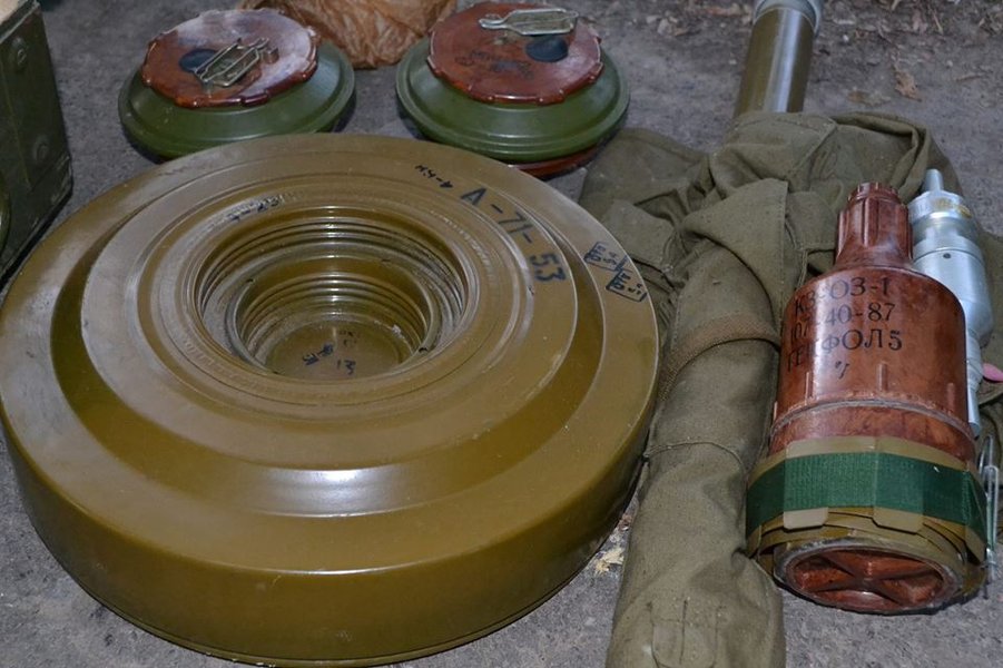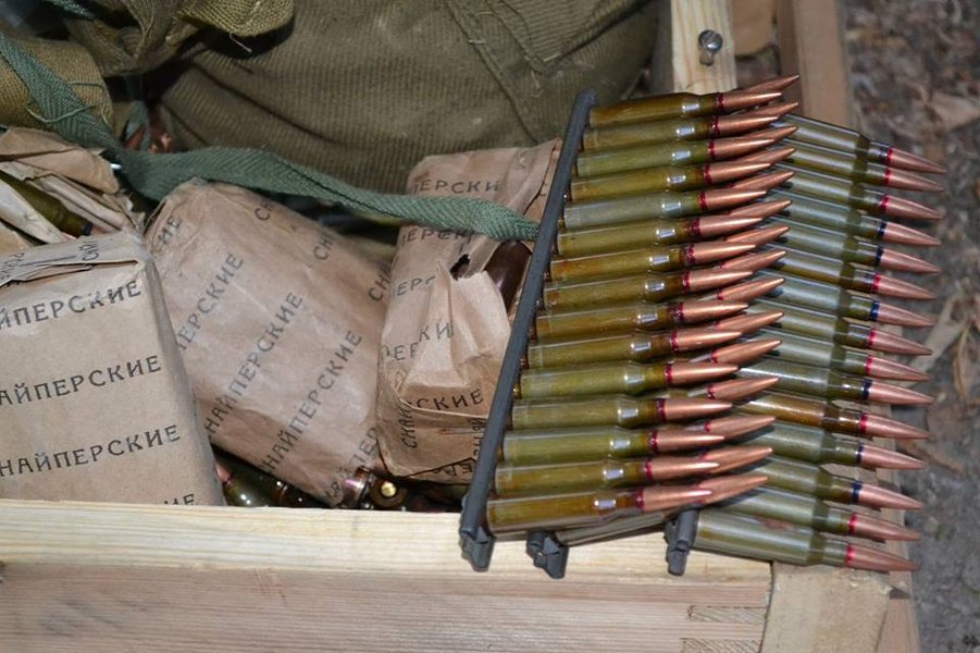 В тайнике были десятки ящиков с патронами различных калибров, в том числе бронебойные и снайперские, сигнальные ракеты, тротиловые шашки, противотанковые мины, гранаты.