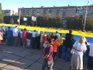 Сине-желтое полотнище заняло всю площадь. Под него забегали дети и взрослые для того, чтобы сфотографироваться. Позднее вся площадь пела гимн Украины и любовалась на грандиозное реющее полотно.