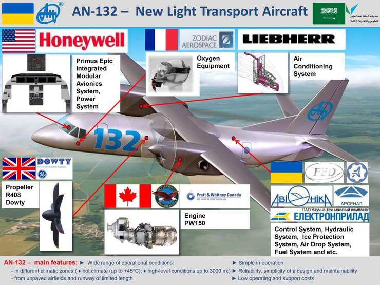 "До конца текущего года ГП "Антонов" завершит постройку самолета-демонстратора Ан-132D по контракту с заказчиком из королевства Саудовская Аравия. Этот самолет построен без участия российских компаний", – говорится в сообщении.