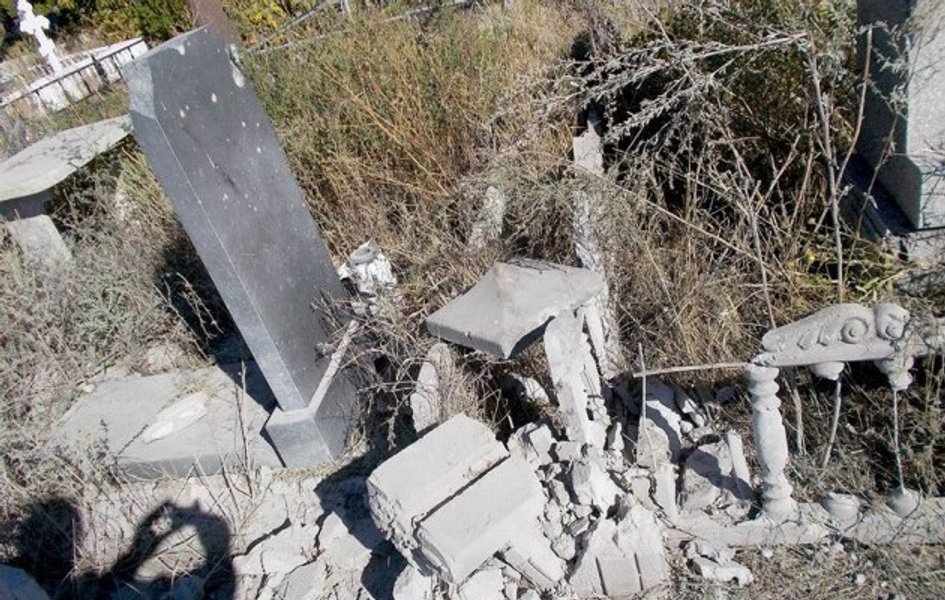 "Особо цинично было обстреляно городское кладбище, где значительным разрушениям подверглись памятники на могилах похороненных здесь жителей города", - отметил Бакай.