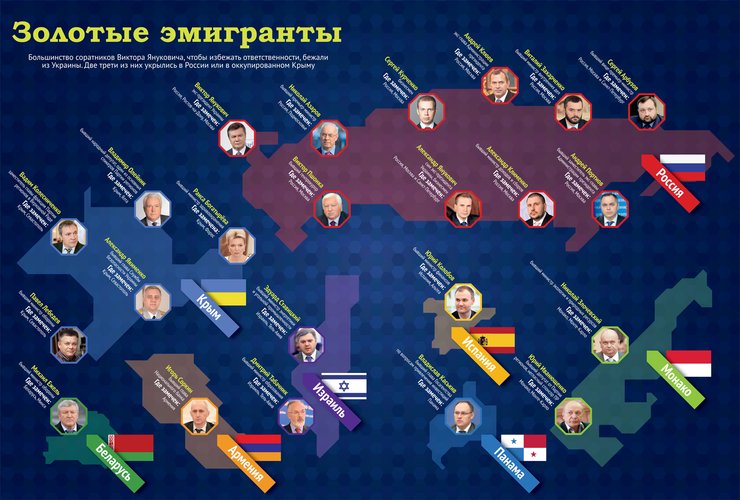 Большинство соратников Виктора Януковича, чтобы избежать ответственности, бежали из Украины. Две трети из них укрылись в России или в оккупированном Крыму