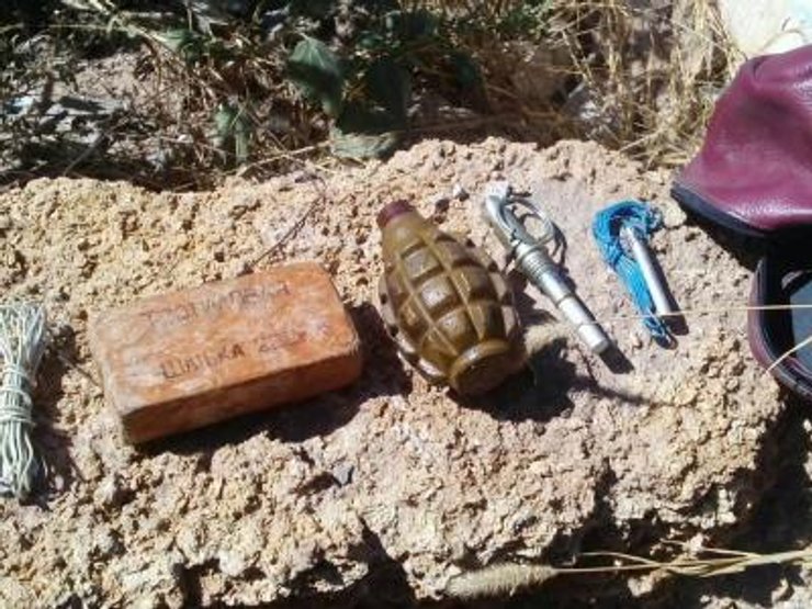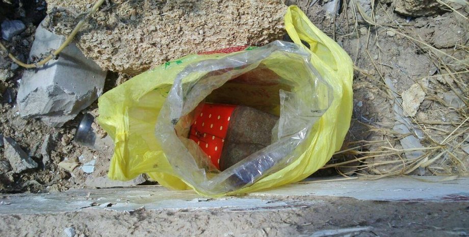 "Взрывоопасные предметы в ходе отработки полученной информации были обнаружены возле одного из домов в н.п. Федоровка Херсонской области. В тайнике, который находился на расстоянии 300 м от местной школы, пограничники и представители полиции нашли пакет с железной банкой из-под сахара, в которой была спрятана граната Ф-1, тротиловая шашка весом 200 г и 2 взрывателя к ней", - сказано в сообщении.