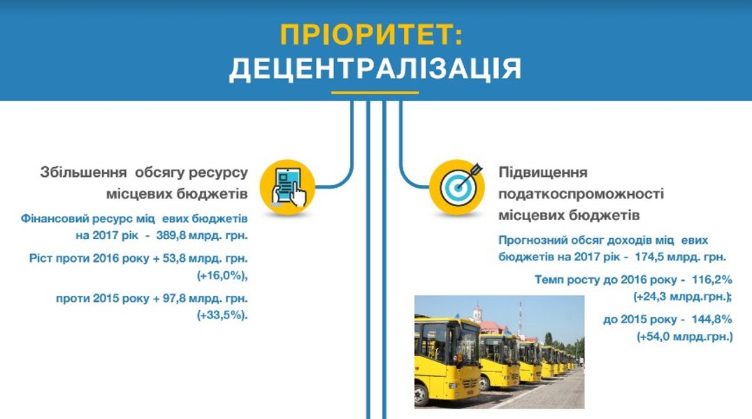 Бюджет – 876,9 млрд грн (в 2016 был 749 млрд грн);